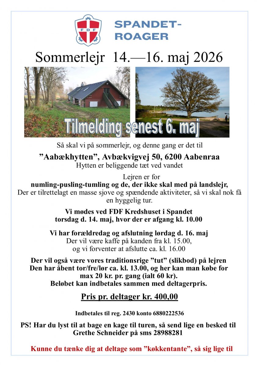 Sommerlejr Aabækhytten 14.-16. maj 2026